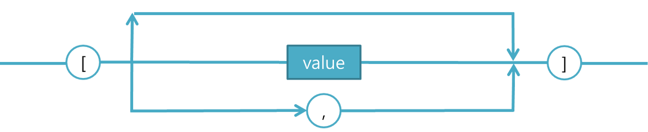 - 배열(array)은 대괄호([])로 감싸며, 값은 쉼표(,)로 구분됩니다.